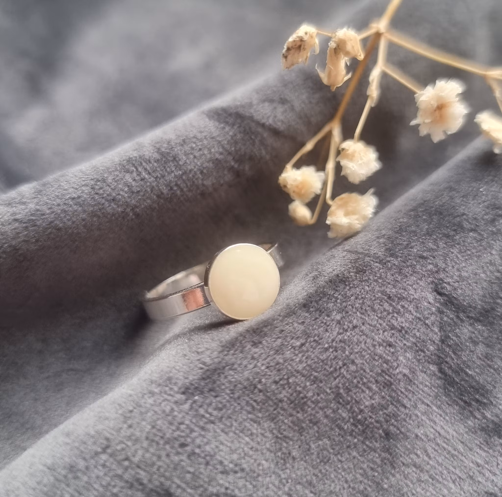En elegant och stilig ring av din egen bröstmjölk i sterling silver 925. Bröstmjölks pärlan är 8mm.