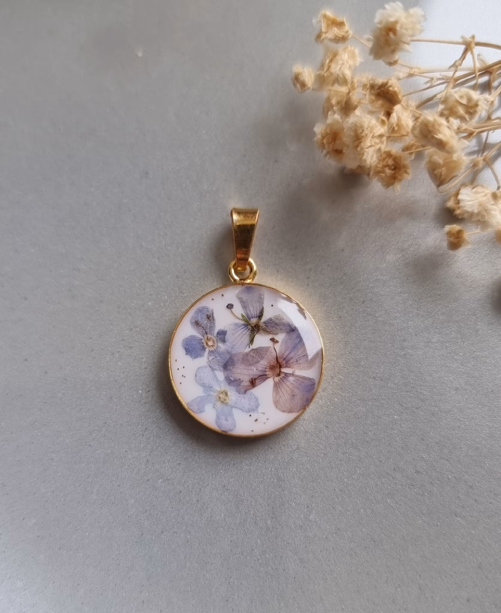 Kärlekens natur är ett unikt halsband som finns i en enda exemplar! Det är handgjort med äkta pressade blommor och en touch av glitter som ger det en magisk glans. Upplev en exklusiv känsla med detta vackra halsband som är tillverkat av högkvalitativt guldpläterat silver 925 och har en storlek på 18mm.
