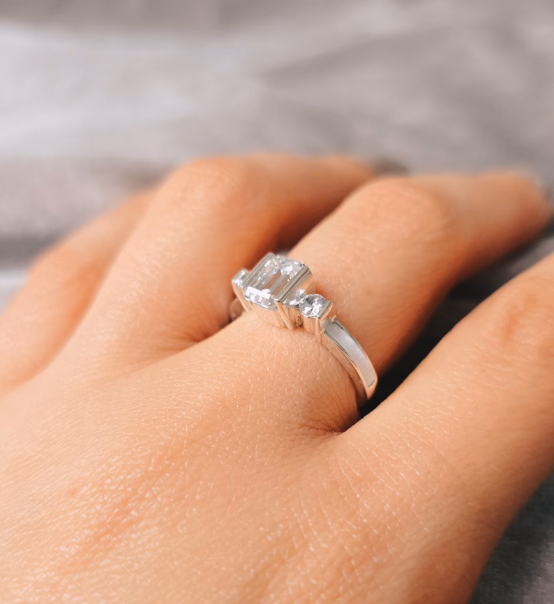 Kärlekens Mirakel är en ring skapad för de stunder som förändrar allt. I centrum strålar en elegant, omslipad sten som fångar ljuset med en klarhet som påminner om livets mest betydelsefulla ögonblick. På var sida om mittstenen vilar fack fyllda med din egen bröstmjölk, små, personliga kärnögonblick bevarade i äkta sterling silver 925.