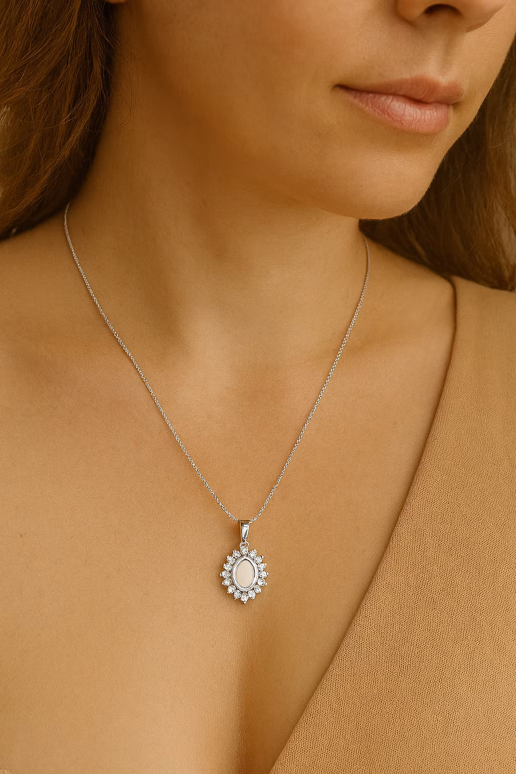 Kärlekens Solros är ett elegant och tidlöst hänge som strålar av värme och betydelse. Den avlånga formen ramas in av gnistrande stenar som påminner om solrosens kronblad och skapar en exklusiv, lyxig lyster. I mitten finns plats för din bröstmjölk som förseglas till ett personligt och varaktigt minne. Det finns även möjlighet att inkludera hårstrån i designen. Skriv gärna till oss om du önskar det, så formar vi smycket tillsammans och återkommer med ett prisförslag. Ett smycke som fångar kärlek, ljus och de stunder du vill bära nära hjärtat.